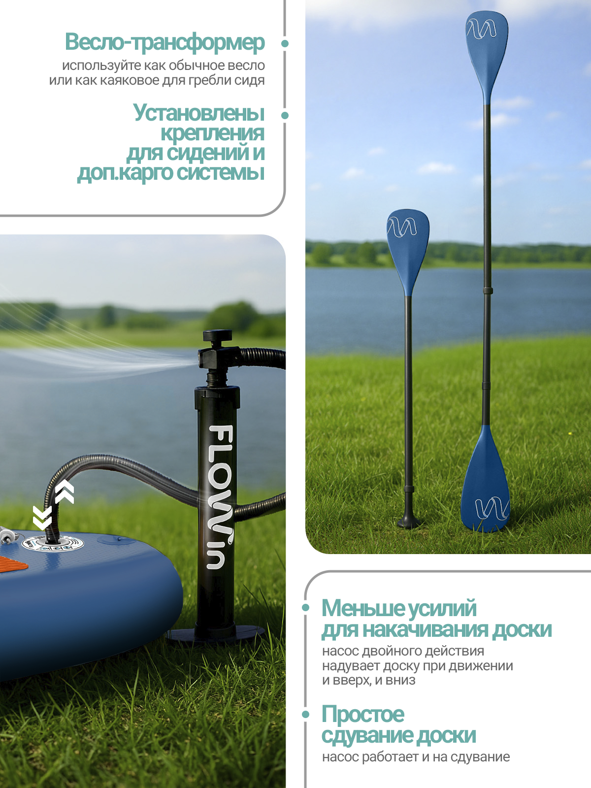 Сапборд надувной двухслойный Flowin Breeze 335 — универсальный SUP board 2в1.