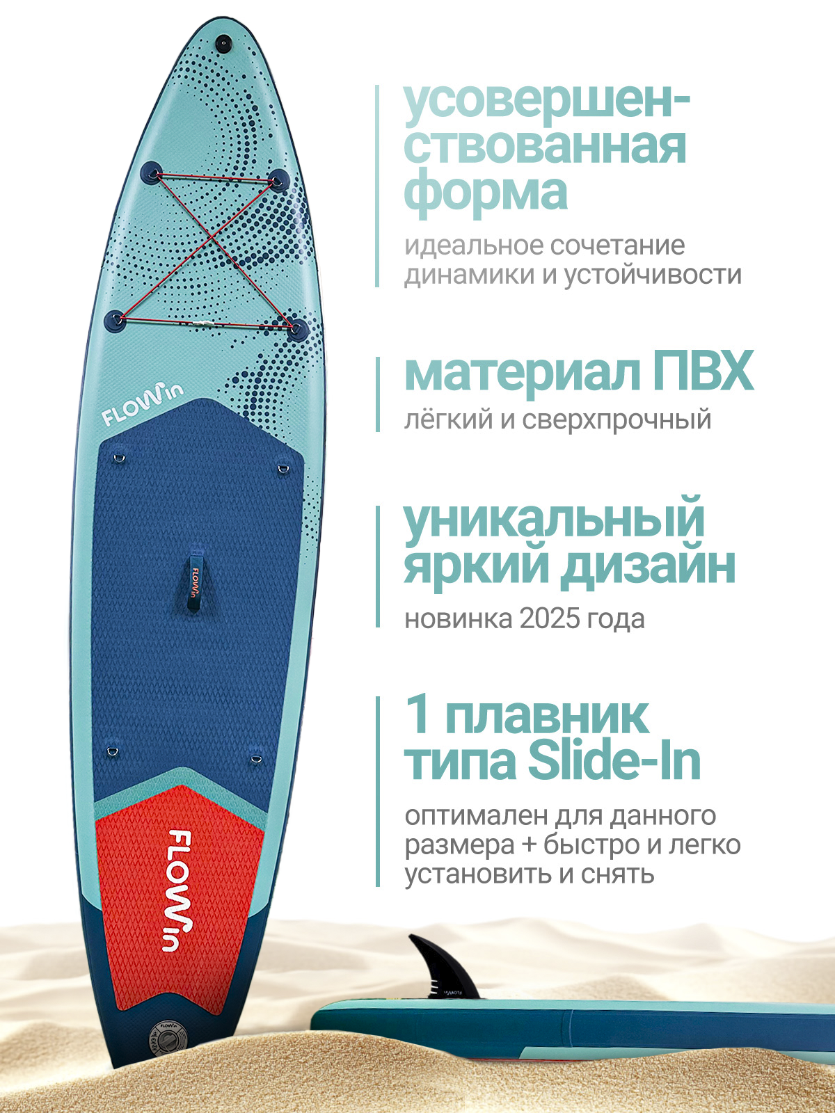 Flowin Breeze 335 — это ваш пропуск в мир водных приключений. Обновленная sup-доска 2026 года сочетает в себе устойчивость, легкую управляемость и стильный дизайн. Благодаря оптимальному размеру 335×82×15 см, этот надувной сапборд идеально подходит как для новичков, так и для профи.
